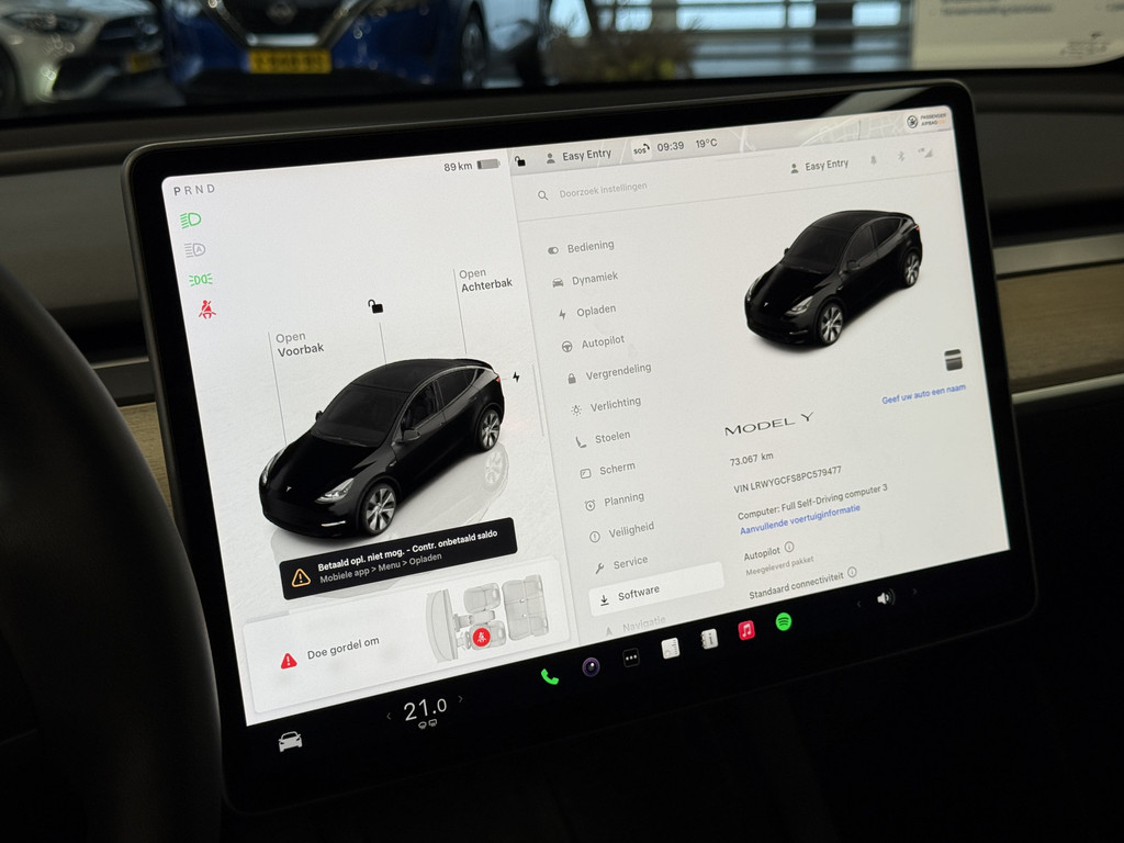 U zult het zien: overstappen naar elektrisch rijden kost u geen enkele moeite als u kiest voor deze Tesla Model Y. CO2-uitstoot? Met de elektromotor rijdt u stil en schoon! De krachtige motor geeft deze Tesla uitstekende prestaties. Neem plaats op de comfortabele stoelen. Dankzij de elektrische bediening en het geheugen is het eenvoudig om hierin de beste zitpositie te vinden. Het glazen panoramadak zorgt ervoor dat u zich omringd voelt door de omgeving. Voor en achter: iedereen dezelfde luxe. Vandaar de verwarmde achterbank.