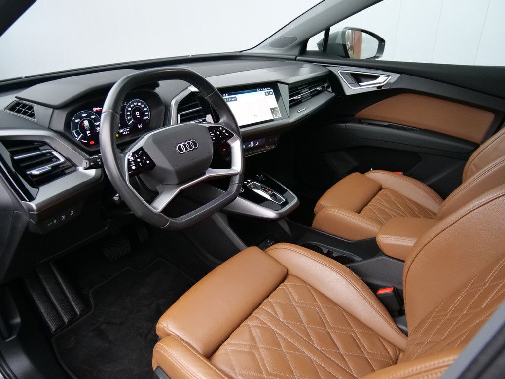 Duurzaam en dynamisch, de Audi Q4 e-tron verenigt deze twee uitersten in zich. Dit is een auto uit 2022, er staat 70161 kilometer op de teller. U wordt actief onderdeel van de energietransitie met de elektromotor. Een krachtige motor geeft deze auto zijn sportieve prestaties. De verwarmbare voorstoelen zijn een heerlijke extra optie, waarmee u uzelf en uw bijrijder een groot plezier doet. Altijd een goede zitpositie bij iedere snelheid, dankzij de sportstoelen. Een praktische extra is de elektrisch bedienbare achterklep die opent en sluit met een druk op de knop. Opvallend is de geavanceerde matrix LED-verlichting met daglichtkwaliteit. De koplampen dimmen automatisch het deel van de lichtstraal waar voor- of tegenliggers in rijden. De overige segmenten blijven aan en verlichten de weg maximaal. Bij de zeer complete uitrusting van deze auto behoren ook 20 inch lichtmetalen velgen, donker getint glas achter, in delen neerklapbare achterbank en LED-achterlichten.