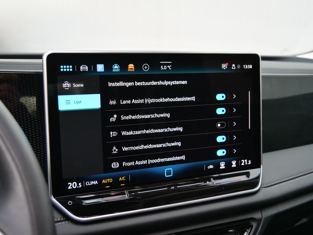 Pragmatisch en veilig als deze auto is, beschikt hij over diverse veiligheidssystemen. In het instrumentarium ziet u tijdens de rit ook de belangrijkste verkeersborden aangegeven, die de auto automatisch voor u leest. Het Lane-keeping systeem registreert permanent of u binnen de lijnen van de rijstrook blijft; dwaalt u onbedoeld af, dan waarschuwt het systeem en corrigeert de koers. Veilig inhalen wordt bevorderd door de actieve dodehoekdetectie. Ook helpen het forward collision warning system, hill hold functie, vermoeidheidsherkenning, autonoom remsysteem en bandenspanningcontrolesysteem, uw rit tot een veilige rit te maken.