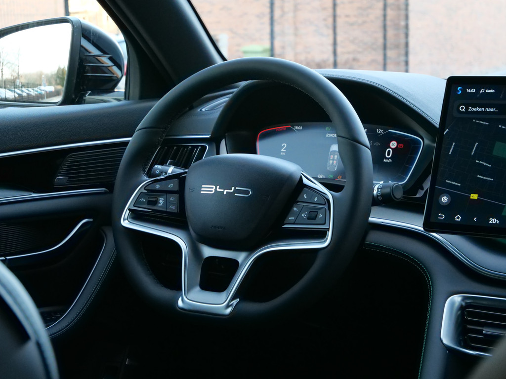 Het zal u verbazen hoe deze auto in staat is om voor u de omgeving en het verkeer om u heen in de gaten te houden. Snelheid en andere benodigde info hoeft u niet meer te bekijken op het dashboard. De head-up display projecteert de gegevens in de voorruit. In het instrumentarium ziet u tijdens de rit ook de belangrijkste verkeersborden aangegeven, die de auto automatisch voor u leest. Voorzien van het Lane-keeping systeem. Ofwel: blijf automatisch in je baan. In deze BYD vinden we verder een dodehoekdetectie, forward collision warning system, hill hold functie, brake assist, vermoeidheidsherkenning en bandenspanningcontrolesysteem.