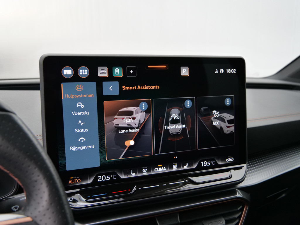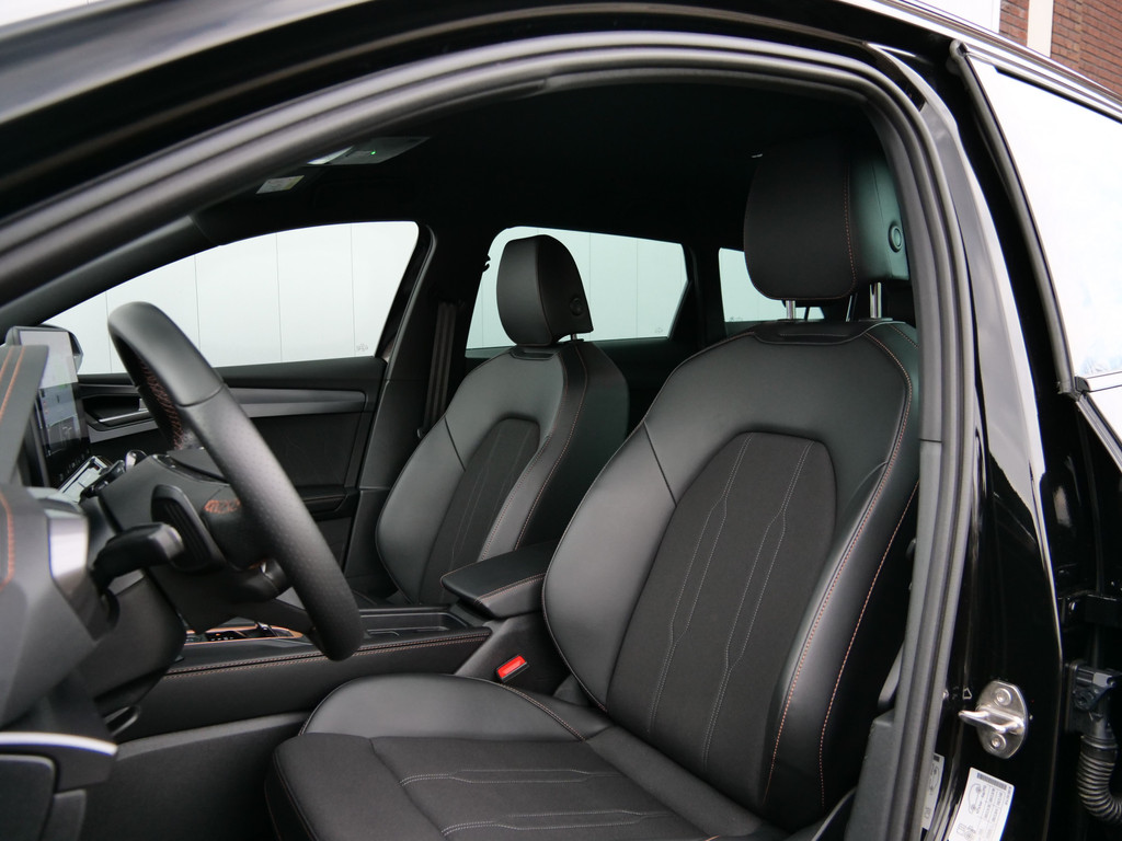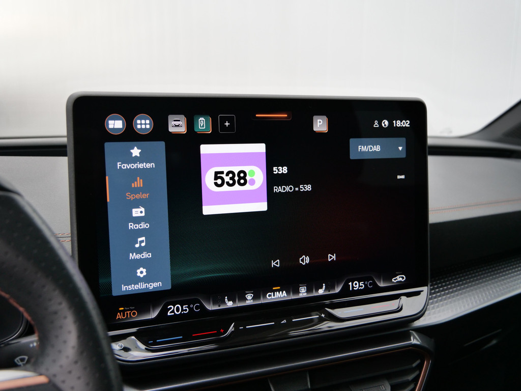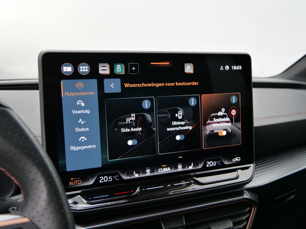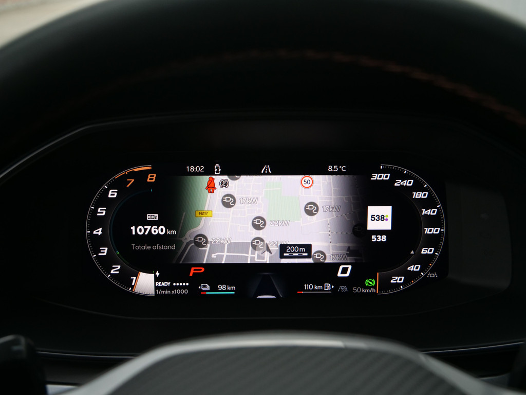 Alle functies voor een veilige en zuinige rit worden overzichtelijk weergegeven op het digitale dashboard. Ook achter de auto geen verrassingen bij het inparkeren. Daarvoor zorgt de achteruitrijcamera. Adaptive cruise control houdt de ingestelde snelheid vast en houdt afstand tot het voertuig voor u. In deze auto kunt u de belangrijkste functies bedienen met uw stem. U weet altijd hoe de auto eraan toe is dankzij Connected Services. Ook handig voor de garage en de wegenwacht. Even de app uitlezen en klaar! Deze CUPRA is voorzien van full map navigatiesysteem, electronic climate control, schakelpaddles aan het stuur, draadloos opladen, DAB ontvangst en regensensor.