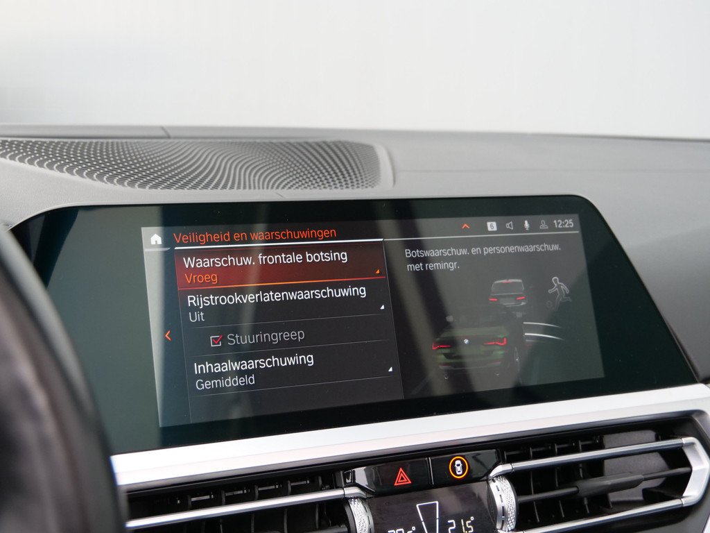 Deze BMW is voorzien van verschillende intelligente veiligheidsvoorzieningen. Ze kijken tijdens het rijden als het ware met u mee, ze signaleren potentieel gevaarlijke situaties en in een aantal gevallen kunnen ze ook ingrijpen. De camera van de verkeersborddetectie herkent verschillende soorten verkeersborden en toont deze op het dashboard. Het Lane-keeping systeem doet precies wat nodig is: waarschuwen en corrigeren bij onbedoelde overschrijding van de rijstrooklijnen. Botsingen met een voorligger gebeuren relatief vaak. De forward collision warning slaat tijdig alarm als dat risico ontstaat, zodat u kunt ingrijpen. Dankzij veiligheidsvoorzieningen als dodehoekdetectie, hill hold functie, brake assist en bandenspanningcontrolesysteem, bent u steeds veilig onderweg.