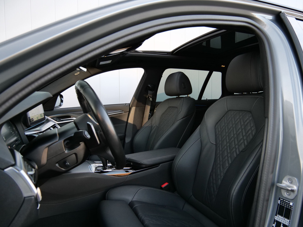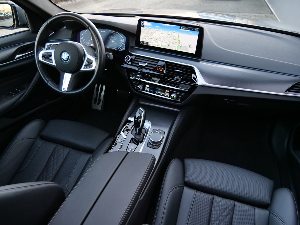 Snelheid, brandstofinfo, noem maar op. Het digitale dashboard houdt u permanent op de hoogte. Goed en overzichtelijk. De achteruitrijcamera geeft u duidelijk zicht op de ruimte achter de auto. Deze BMW 5-serie Touring is voorzien van remote services. Via uw smartphone bedient u diverse functies ook op afstand en krijgt u informatie over de status van uw auto. Selecteer uw reisbestemming en het navigatiesysteem met harde schijf brengt u snel waar u moet zijn. Deze BMW 5-serie Touring is voorzien van sensoren aan de achterzijde om een achteropkomend verkeer waarschuwing te geven als de afstand tussen u en een achterligger te klein is. Ook is de BMW uitgerust met: WIFI-hotspot, automatische airconditioning, schakelpaddles aan het stuur, draadloos opladen, DAB ontvangst en regensensor.