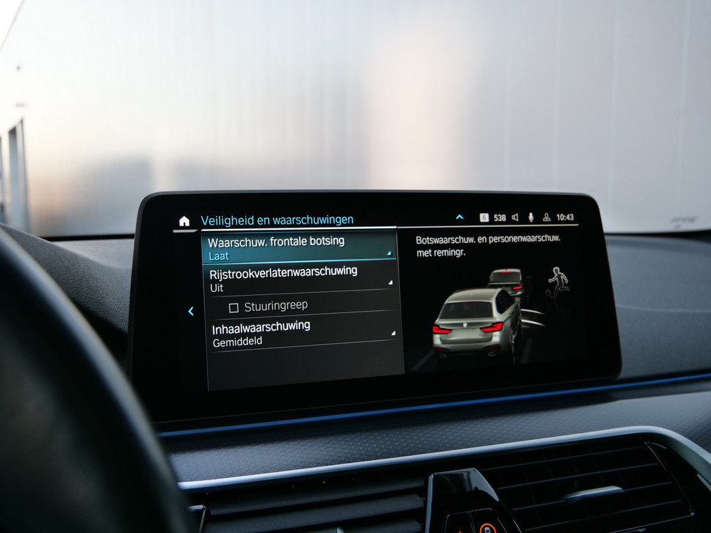 Deze BMW is voorzien van verschillende intelligente veiligheidsvoorzieningen. Ze kijken tijdens het rijden als het ware met u mee, ze signaleren potentieel gevaarlijke situaties en in een aantal gevallen kunnen ze ook ingrijpen. Veiligheid voor alles, ook als u rij- en routeinformatie wilt aflezen. De head-up display projecteert de gegevens op de vooruit en u kunt gewoon voor u blijven kijken. Verkeersbord-detectie herkent verkeersborden en toont deze op het instrumentarium van de auto. Het forward collision warning-systeem is constant alert en detecteert via sensor de afstand tot voorliggers. Wordt die te klein, dan volgt een automatische waarschuwing. Dankzij veiligheidsvoorzieningen als dodehoekdetectie, hill hold functie, brake assist en bandenspanningcontrolesysteem, bent u steeds veilig onderweg.