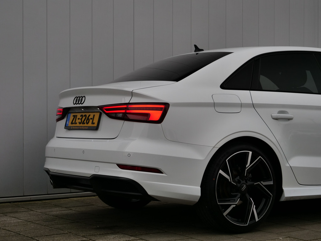 Hij is stijlvol en comfortabel, deze Audi A3 Limousine, en hij is ontworpen om u veilig en comfortabel te laten rijden onder alle omstandigheden. Als ook de uitstraling een beetje pittig mag, komt de S-Line styling mooi van pas. Hij heeft een benzinemotor en een automatische transmissie. Pittig rijden wordt nog comfortabeler dankzij de fraaie sportstoelen. Bij de uitrusting van deze auto horen onder meer 19 inch lichtmetalen velgen, LED koplampen, sportonderstel, halflederen bekleding, warmtewerend glas en snelheidsafhankelijke stuurbekrachtiging.