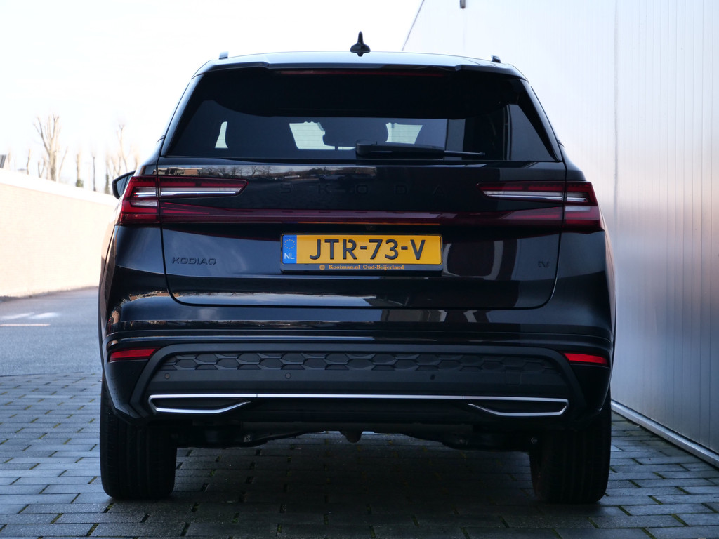Hij toont sportief en zelfbewust, stijlvol en krachtig: deze ŠKODA Kodiaq dwingt respect af. Hij heeft een benzinemotor en een automatische transmissie. Deze ŠKODA Kodiaq heeft verwarmbare voorstoelen, voor zowel bestuurder als bijrijder. Zijwaartse g-krachten worden solide opgevangen door de sportstoelen. Een handige voorziening op deze auto is de elektrische achterklep die u op afstand kunt openen. Luxepaardjes en levensgenieters worden enthousiast van de verwarmde achterbank. Met matrix LED-verlichting rijdt u eigenlijk altijd met groot licht, dus maximaal zicht. Toch is verblinden er niet bij, want het systeem regelt de verlichting zo dat tegenliggers er geen last van hebben. Ook is de auto voorzien van: 19 inch lichtmetalen velgen, geluidsisolerende ramen, dakspoiler, in delen neerklapbare achterbank en LED-achterlichten.