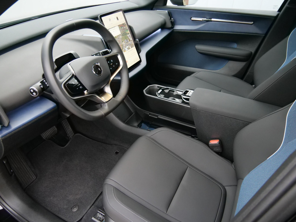 Natuurlijk brengt het digitale dashboard alle ritinformatie perfect in beeld. Maar ook communicatie, navigatie en tal van andere functies zijn permanent te volgen. Met de hulp van vier camera's, biedt de 360 graden camera op deze auto een panoramisch zicht, wat bijzonder nuttig is bij het parkeren en manoeuvreren. De jeugd is niet los te maken van hun smartphone, en dat zie je ook aan deze jonge auto. Via een speciale app staat u overal en altijd in contact met uw vierwieler. Superhandig! De hoorbare sensatie van het high performance audiosysteem is een ervaring op zich. Geen onnodige spaghetti van oplaadsnoertjes voor de smartphone: deze Volvo EX30 heeft een draadloze oplaadmogelijkheid voor telefoons. Deze auto is voorzien van dashboard met spraakbediening, navigatiesysteem, WIFI-hotspot, kruisend verkeer detectie, electronic climate control en DAB ontvangst.