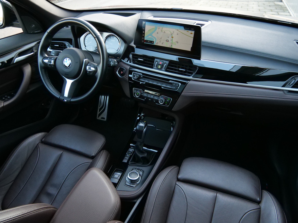 Van uw nieuwe auto verlangt u rijplezier, maar ook optimaal comfort en veiligheid. Daarom is de BMW X1 de auto die u zoekt. Met de pittige benzinemotor en de automatische transmissie is autorijden een waar genoegen. De auto is voorzien van leren bekleding - een fraaie en sfeerverhogende extra. Dankzij de elektrische stoelbediening is het gemakkelijk om de optimale zitpositie te vinden. Het interieur baadt in een zee van licht met het elektrische bediende glazen panoramadak. De bagageruimte is toegankelijk via een comfortverhogende elektrische achterklep. Bij de uitrusting van deze BMW horen onder meer 19 inch lichtmetalen velgen, LED koplampen, donker getint glas achter, in delen neerklapbare achterbank en snelheidsafhankelijke stuurbekrachtiging.