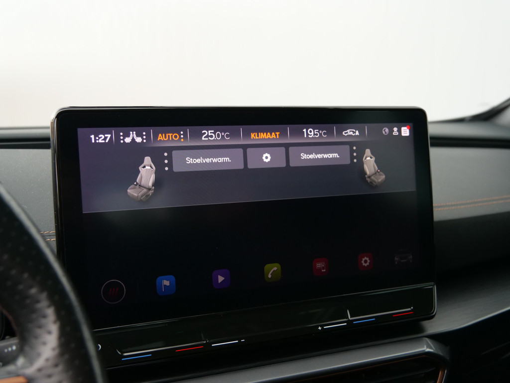 Uw nieuwe auto staat klaar voor vertrek. Stap gerust in, deze CUPRA Formentor heeft 67798 kilometer gelopen en is van het bouwjaar 2021. Trap het gaspedaal in en voel de geweldige acceleratie van deze auto. Voorin is het 's winters genieten met de verwarmbare voorstoelen voor zowel bestuurder als bijrijder. De sportstoelen geven het interieur een super strakke look. Van binnen lijkt het allemaal uitermate ruim dankzij de vrije inval van daglicht via het elektrisch bediende glazen panoramadak. Een praktische extra is de elektrisch bedienbare achterklep die opent en sluit met een druk op de knop. Bij de rijke uitrusting horen ook 19 inch lichtmetalen velgen, LED koplampen, halflederen bekleding, adaptief dempingsysteem, donker getint glas achter en in delen neerklapbare achterbank.
