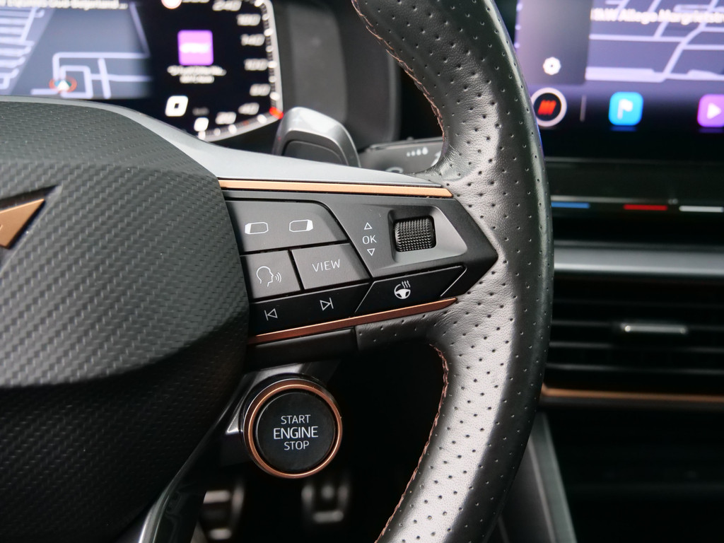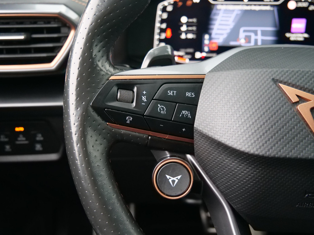 Uw nieuwe auto staat klaar voor vertrek. Stap gerust in, deze CUPRA Formentor heeft 67798 kilometer gelopen en is van het bouwjaar 2021. Trap het gaspedaal in en voel de geweldige acceleratie van deze auto. Voorin is het 's winters genieten met de verwarmbare voorstoelen voor zowel bestuurder als bijrijder. De sportstoelen geven het interieur een super strakke look. Van binnen lijkt het allemaal uitermate ruim dankzij de vrije inval van daglicht via het elektrisch bediende glazen panoramadak. Een praktische extra is de elektrisch bedienbare achterklep die opent en sluit met een druk op de knop. Bij de rijke uitrusting horen ook 19 inch lichtmetalen velgen, LED koplampen, halflederen bekleding, adaptief dempingsysteem, donker getint glas achter en in delen neerklapbare achterbank.