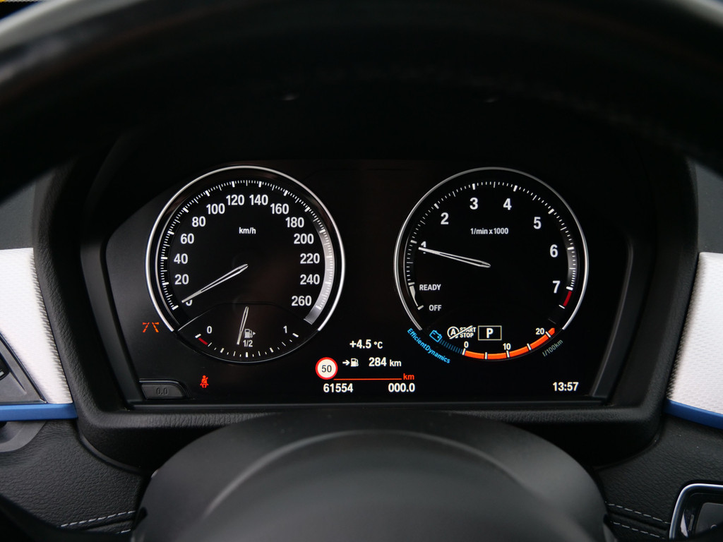 Zoals u mag verwachten van deze BMW X1 is hij uitgerust met een reeks aan actieve veiligheidssystemen. Dat de auto steeds meer taken van de bestuurder overneemt, merkt u bijvoorbeeld aan het systeem voor verkeersbord-detectie in deze BMW. Forward collision warning waarschuwt bij een dreigende aanrijding en vermindert de gevolgen van een ongeval. Verder is deze auto uitgerust met hill hold functie, brake assist en bandenspanningcontrolesysteem.