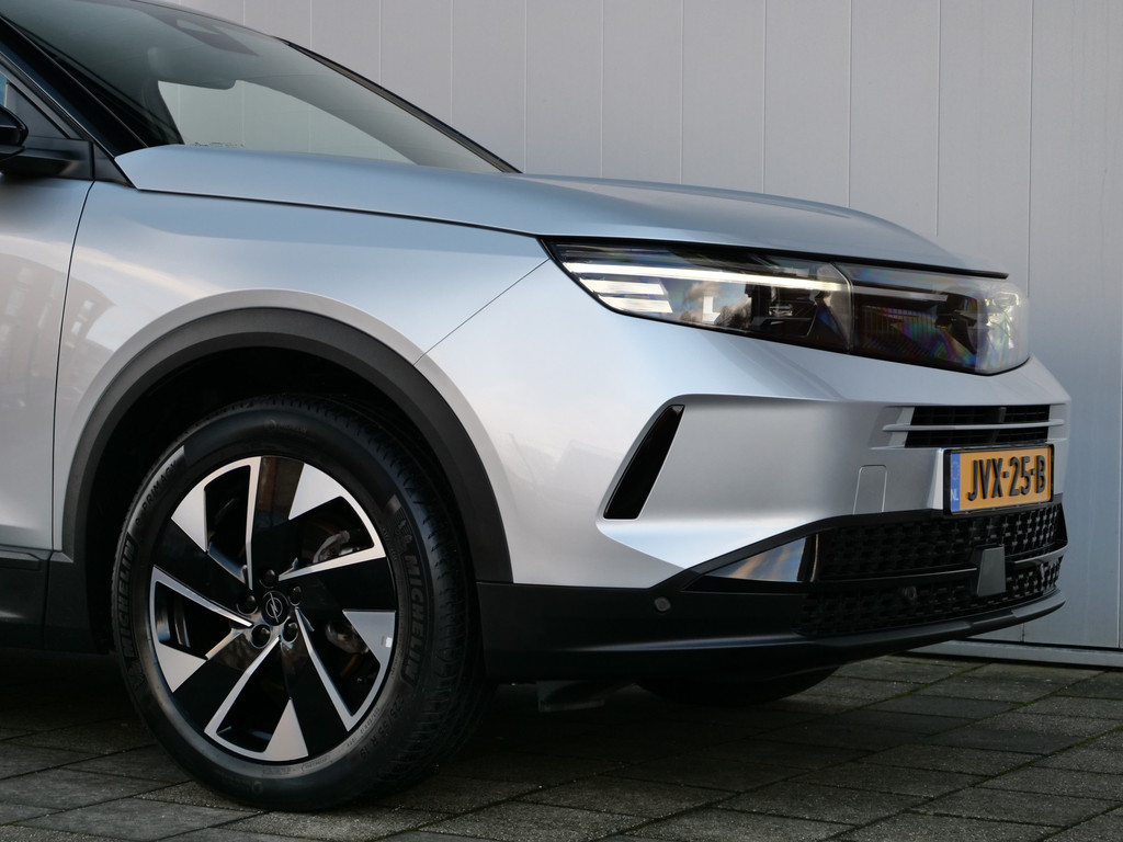 Voor het overzicht tijdens iedere rit is deze Opel Grandland voorzien van een gemakkelijk afleesbaar digitaal dashboard. Kommaar-kommaar-kommaar, aldus de achteruitrijcamera. Iedere centimeter vrije ruimte komt haarscherp in beeld. Schadevrij inparkeren maar! Deze Opel Grandland is 'connected'. Belangrijke functies worden permanent gemeten en zijn uit te lezen via een speciale app, ook op afstand. Voor een veilige rit is het belangrijk dat uw handen het stuur vasthouden en uw ogen gefocust blijven op de weg; daarom kunt u het audiosysteem, met DAB-ontvangst en full map navigatiesysteem bedienen met het stuurwiel of via spraakbediening. Aan boord bevindt zich een draadloze telefoonlader. Geen kabels of snoertjes - opladen maar! Natuurlijk behoren electronic climate control, schakelpaddles aan het stuur, regensensor, cruise control, keyless entry en automatisch dimmende binnenspiegel ook tot de uitrusting van deze complete auto.