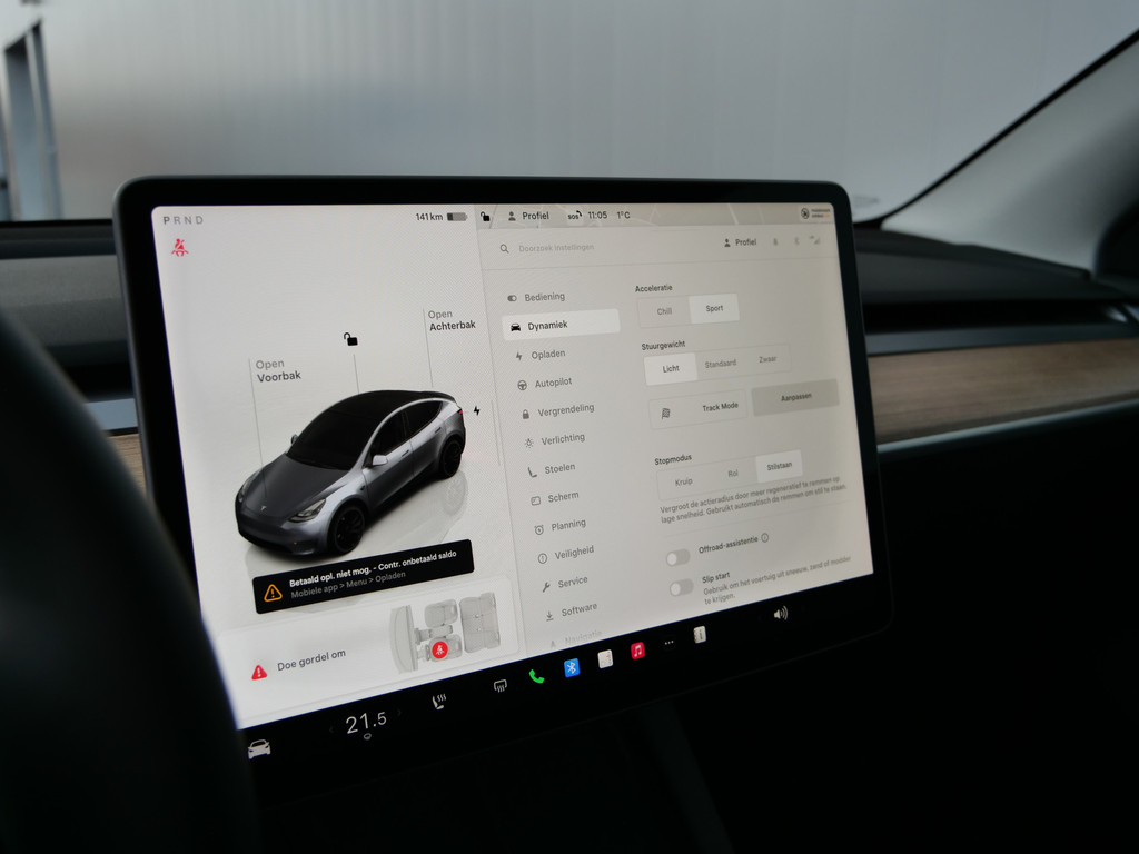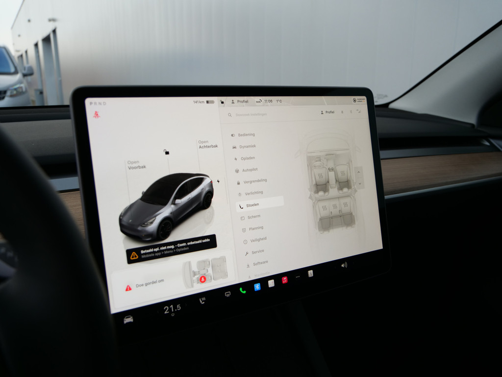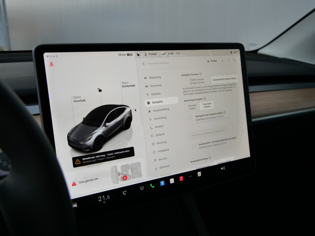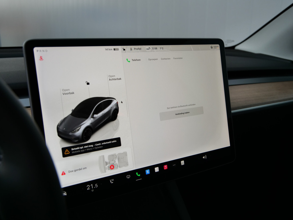 Als u regelmatig met een aanhanger of een fietsendrager op pad bent, is de afneembare trekhaak een praktische extra. U weet altijd hoe de auto eraan toe is dankzij Connected Services. Ook handig voor de garage en de wegenwacht. Even de app uitlezen en klaar! Onder alle omstandigheden een volmaakt geluid onderweg: het high performance audiosysteem zorgt ervoor. Of het buiten nu warm is of koud, dankzij electronic climate control is het binnen altijd behaaglijk. Een prettige optie is de keyless entry, die ervoor zorgt dat de Tesla Model Y automatisch van het slot gaat als u dichtbij komt. Wat u ook in deze auto kunt vinden zijn dashboard met spraakbediening, full map navigatiesysteem, parkeerassistent en automatisch dimmende buitenspiegels.