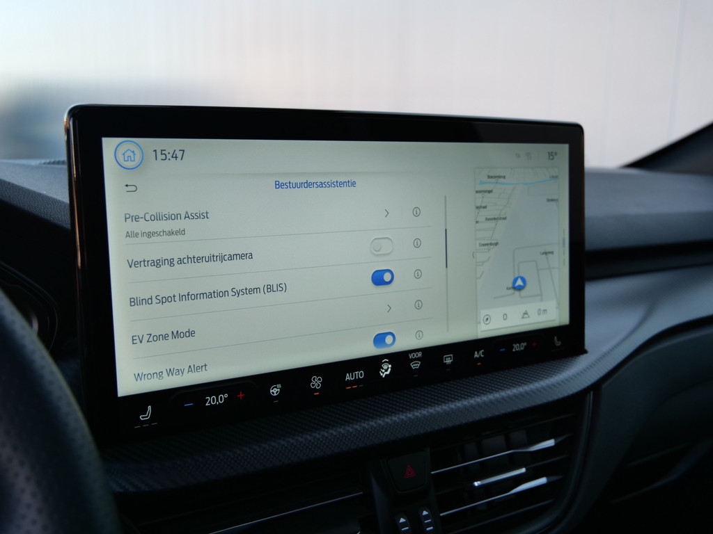 Met de nieuwste technologieën aan boord is deze Ford in staat om zelf te reageren op potentieel gevaarlijke situaties op de weg. Mis geen seconde van wat er voor u gebeurt: door de head-up display ziet u de weg én de ritinformatie! In het instrumentarium kunt u bovendien de verkeersborden zien die u onderweg tegenkomt. Zo helpt deze Ford u om veiliger te rijden. Met het Lane-keeping systeem gaat u nooit onbedoeld over de streep. Dankzij veiligheidsvoorzieningen als dodehoekdetectie, forward collision warning system, hill hold functie, vermoeidheidsherkenning, autonoom remsysteem en bandenspanningcontrolesysteem, bent u steeds veilig onderweg.