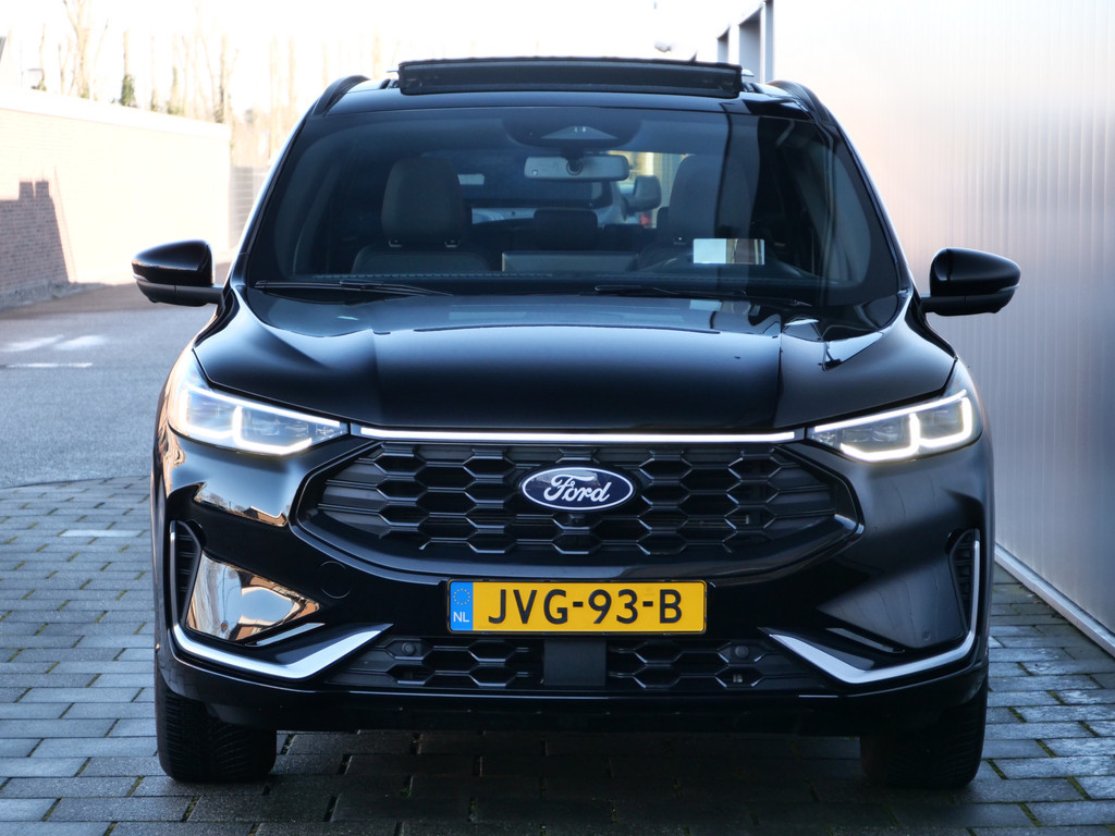 Gezien z'n capaciteiten en design is deze Ford Kuga van de jongste generatie. Met z'n uitermate bescheiden meterstand koopt u eigenlijk een nieuwe auto. Maar dat betaalt u mooi niet. Met een viercilinder benzinemotor en een automatische transmissie beschikt deze Ford over uitstekende prestaties. Ruimte? Ja hoor! Open maar eens de elektrisch bedienbare achterklep en check de bagageruimte; stap daarna in om het weidse gevoel te ervaren dat het elektrisch bediende glazen panorama dak u bezorgt. Dankzij de elektrische stoelbediening is het gemakkelijk om de optimale zitpositie te vinden. Ook op de achterbank kunnen passagiers zichzelf snel opwarmen dankzij de achterbankverwarming. Tot de uitrusting van deze Ford behoren ook 18 inch lichtmetalen velgen, LED koplampen, geluidsisolerende ramen, in delen neerklapbare achterbank, LED-achterlichten en sportuitlaat.