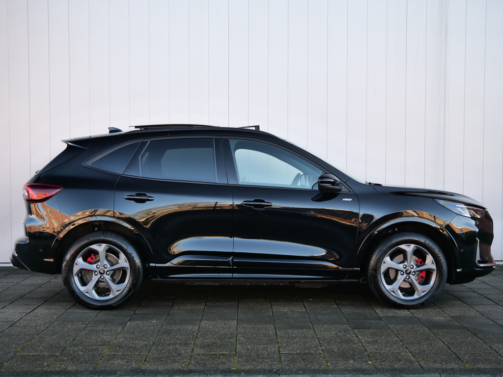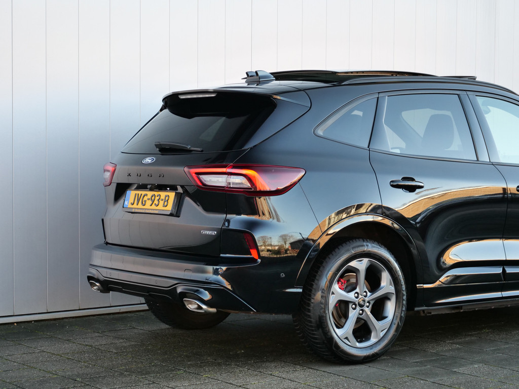 Gezien z'n capaciteiten en design is deze Ford Kuga van de jongste generatie. Met z'n uitermate bescheiden meterstand koopt u eigenlijk een nieuwe auto. Maar dat betaalt u mooi niet. Met een viercilinder benzinemotor en een automatische transmissie beschikt deze Ford over uitstekende prestaties. Ruimte? Ja hoor! Open maar eens de elektrisch bedienbare achterklep en check de bagageruimte; stap daarna in om het weidse gevoel te ervaren dat het elektrisch bediende glazen panorama dak u bezorgt. Dankzij de elektrische stoelbediening is het gemakkelijk om de optimale zitpositie te vinden. Ook op de achterbank kunnen passagiers zichzelf snel opwarmen dankzij de achterbankverwarming. Tot de uitrusting van deze Ford behoren ook 18 inch lichtmetalen velgen, LED koplampen, geluidsisolerende ramen, in delen neerklapbare achterbank, LED-achterlichten en sportuitlaat.