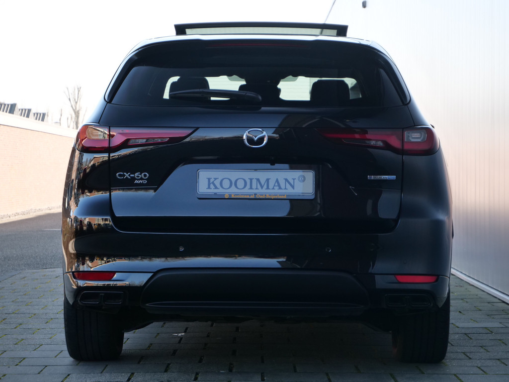 Met zijn ruimte en zijn prestaties is dit de auto die bij u past. Deze Mazda CX-60 heeft 13851 kilometer gelopen. Dit is een van de betere hybride auto's. Ideaal rijden door de combi van elektromotor en verbrandingsmotor! De luxe van het lederen interieur, gecombineerd met het gemak van het elektrisch bediende glazen panorama dak en de superhandige elektrisch bedienbare achterklep zorgen voor een wel heel complete uitvoering. Kijk, en die stoelverwarming, dat is nou echt comfort. Helemaal als het buiten winters aanvoelt. Ook 20 inch lichtmetalen velgen, LED koplampen, dakspoiler, donker getint glas achter, in delen neerklapbare achterbank en LED-achterlichten horen tot de voorzieningen op deze auto.