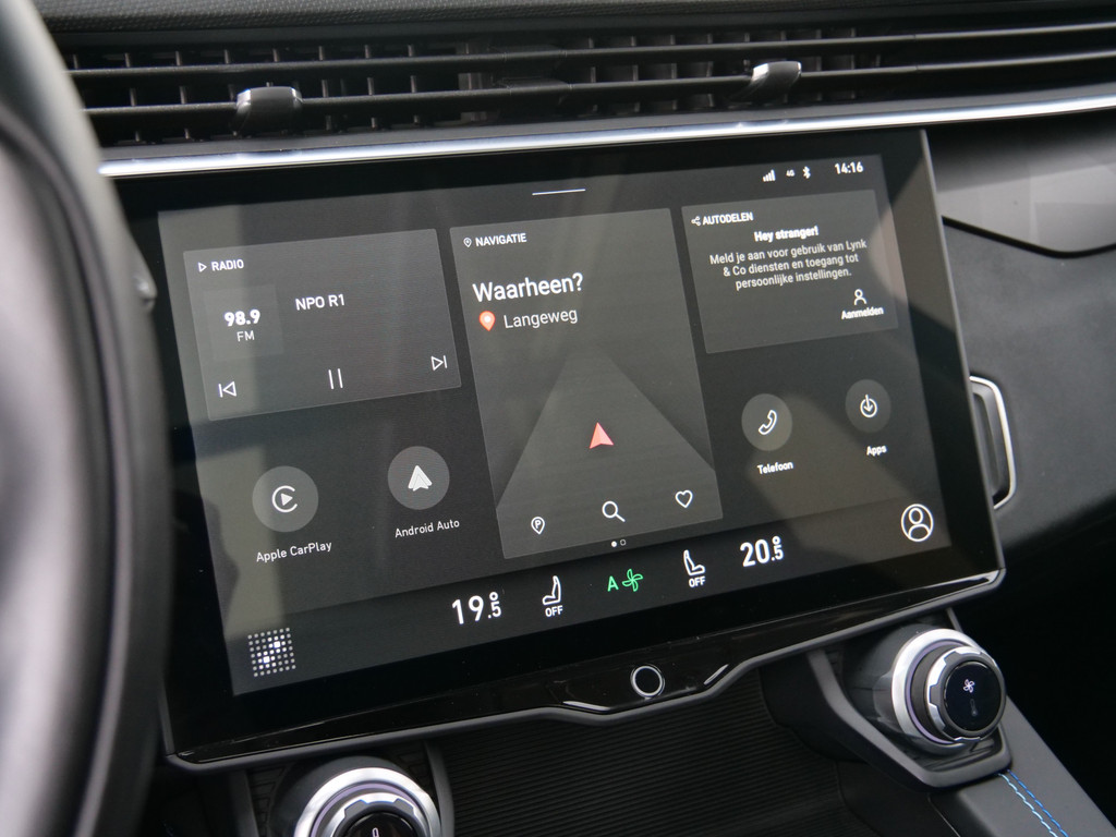De digitale wereld van mobiliteit verwelkomt u; op het digitale dashboard wordt alles weergegeven om uw rit gemakkelijk en veilig te maken. Met adaptive cruise control houdt de auto zelfstandig afstand tot uw voorligger. Een veiligheidsverhogende optie waarmee u comfortabel onderweg bent. In de file rijden vreet concentratie. Daarom komt de file assistent te hulp om veilig afstand te houden en automatisch te stoppen als uw voorligger stilstaat. In deze 01 vindt u niet alleen schakelaars op het stuur om het full map navigatiesysteem te bedienen en het audio-installatiesysteem met DAB-ontvangst, maar er is ook spraakbediening. Is uw smartphone geschikt voor snoerloos opladen? Dan zorgt de draadloze oplaadmogelijkheid voor telefoons weer voor een volle accu zonder snoeren en stekkers. Ook is de Lynk & Co uitgerust met: WIFI-hotspot, achteropkomend verkeer waarschuwing, automatische airconditioning, parkeersensoren achter, regensensor en keyless entry.