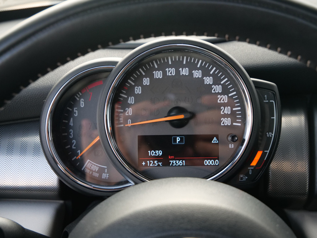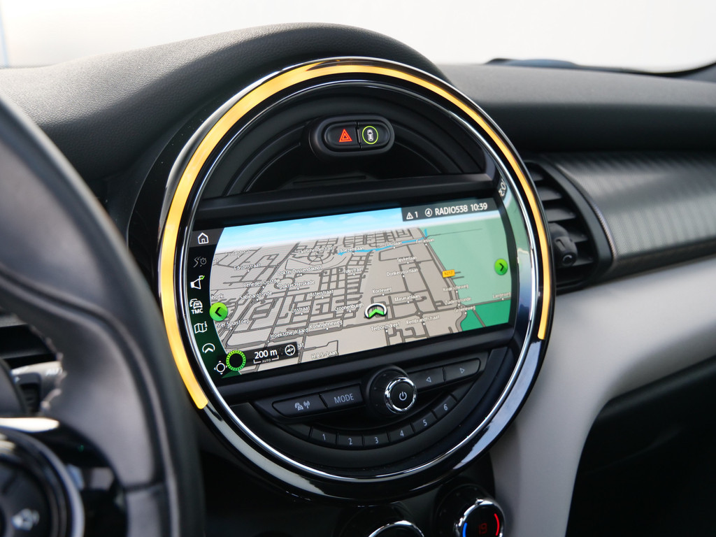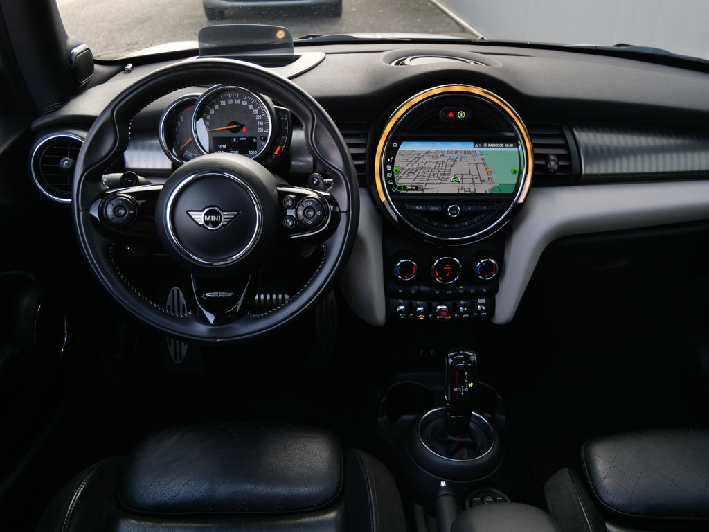 Kom maar, kom maar, kom maar... ho! Prettig hoor, zo'n achteruitrijcamera. Het high performance audiosysteem is volledig afgestemd op de akoestiek van de auto; genieten dus! Omdat u nu eenmaal niet overal ogen heeft, is deze MINI voorzien van een achteropkomend verkeer waarschuwing die registreert wanneer de afstand tot uw achterligger te krap is. Dankzij automatische airconditioning is het interieur behaaglijk warm of verfrissend koel. Het drukke verkeer eist onderweg al uw aandacht op. Daarom is het goed dat deze MINI is voorzien van diverse systemen die u assisteren tijdens de rit. Een automatisch inschakelbare verlichting neemt het waar als het donker wordt of gaat schemeren, en schakelt dan automatisch de verlichting in. Op dezelfde manier "ziet" de regensensor de eerste spatjes regen en schakelt dan de ruitenwissers in, en als het harder gaat regenen zet hij de ruitenwissers ook in een snellere stand. En dan is deze auto ook nog eens voorzien van dashboard met spraakbediening, full map navigatiesysteem, cruise control, sportstuurwiel, keyless entry en centrale deurvergrendeling met afstandsbediening.