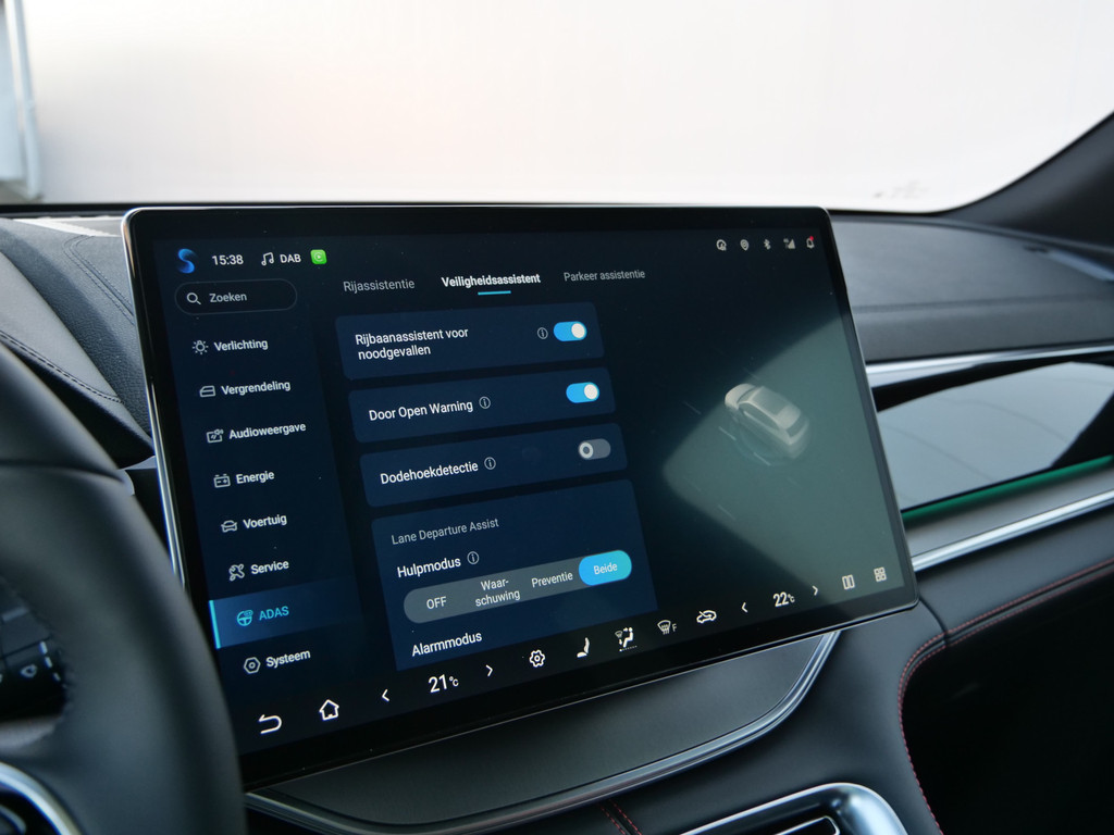 Het rijden met deze BYD wordt nog meer ontspannen dankzij de innovatieve technieken die onderweg over uw veiligheid waken. Hou de weg in het vizier! De head-up display zorgt dat u de dashboardinfo in beeld geprojecteerd krijgt. In het instrumentarium kunt u bovendien de verkeersborden zien die u onderweg tegenkomt. Zo helpt deze BYD u om veiliger te rijden. Een camera houdt de juiste koers binnen de rijstrook in de gaten en het Lane-keeping systeem corrigeert bij afwijkingen. Dankzij veiligheidsvoorzieningen als dodehoekdetectie, forward collision warning system, hill hold functie, brake assist, vermoeidheidsherkenning en bandenspanningcontrolesysteem, bent u steeds veilig onderweg.
