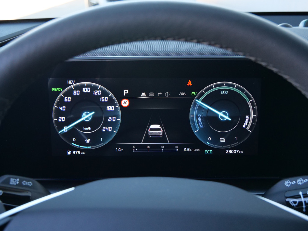 Met de nieuwste technologieën aan boord is deze Kia in staat om zelf te reageren op potentieel gevaarlijke situaties op de weg. Jachtvliegers doen het al jaren, maar u kunt het nu ook: met de head-up display functie-informatie aflezen zonder uw ogen van de weg te halen. Tijdens de rit hebt u altijd een bijrijder, want de verkeersbord-detectie leest de borden langs de weg en projecteert ze voor u op het instrumentarium. Het Lane-keeping systeem let constant op en waarschuwt of corrigeert als u onoplettend over de lijnen van de rijstrook gaat. De veiligheid van deze auto wordt verder verhoogd door dodehoekdetector detectiesysteem, forward collision warning system, hill hold functie, vermoeidheidsherkenning, autonoom remsysteem en bandenspanningcontrolesysteem.