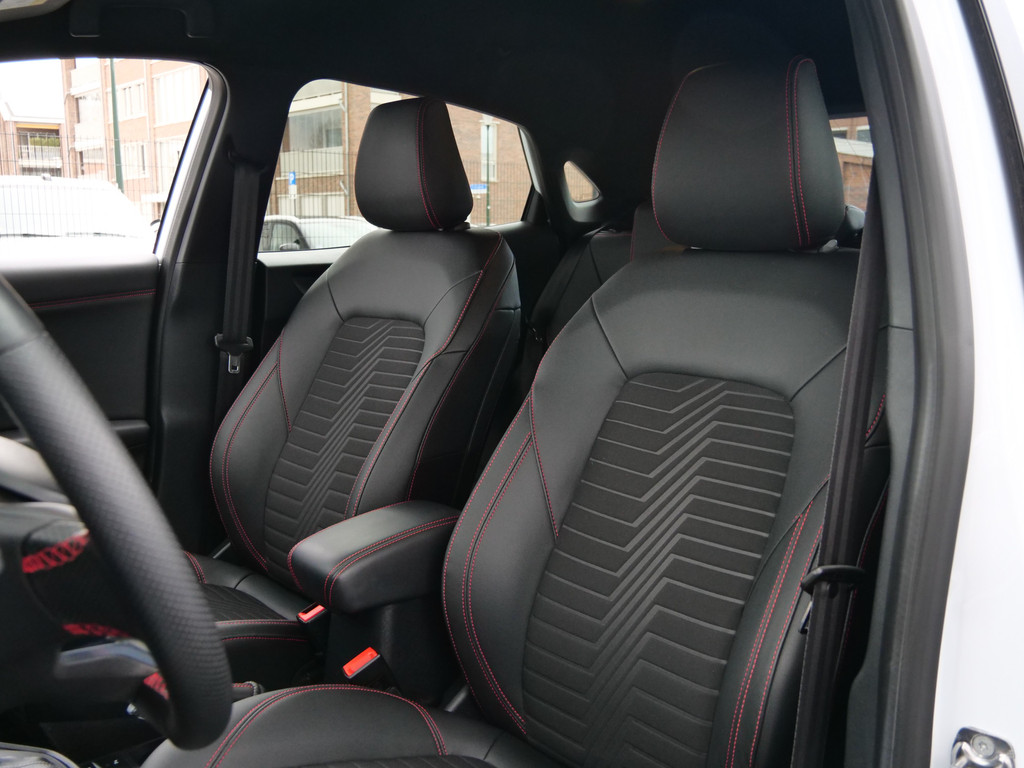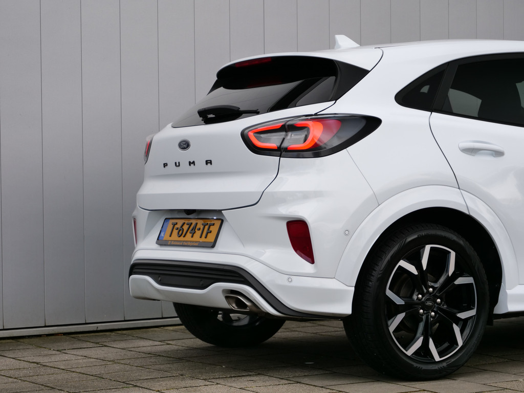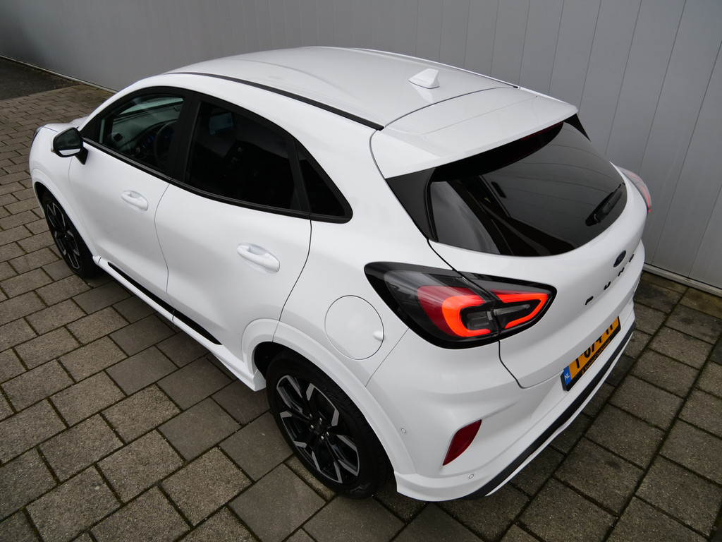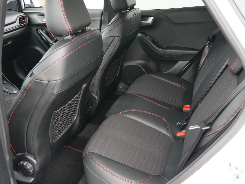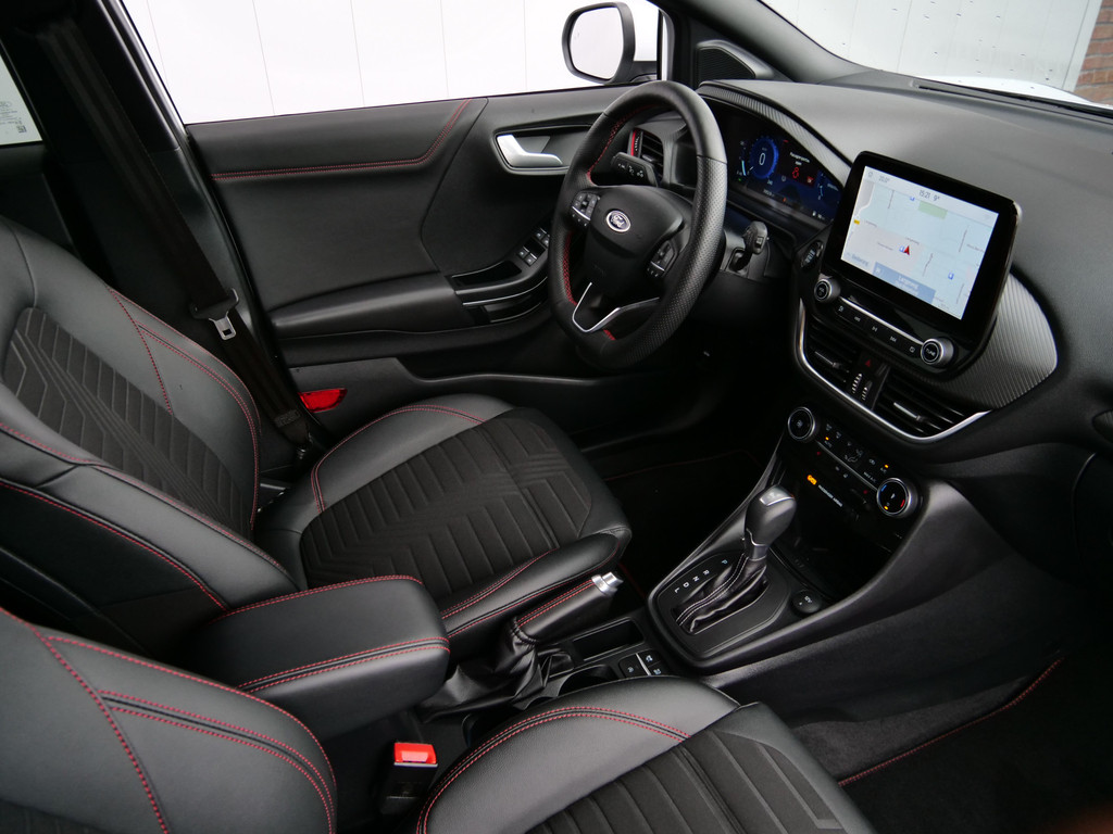 U ziet het meteen aan zijn krachtige design, de Ford Puma is een auto die kwaliteit uitstraalt. Onderhuids vindt u die kwaliteit terug in de geavanceerde techniek, die deze auto zijn sportieve rijeigenschappen geeft. Met zijn benzinemotor en automatische transmissie is dit een prima auto voor nog vele kilometers. Lekker hoor, die verwarmbare voorstoelen. Helemaal op koude dagen. Ziet er goed uit, die sportstoelen. Maar waar het om gaat, is de solide zit onder alle omstandigheden. Met een druk op de knop gaat de elektrische achterklep open. Ook is de auto voorzien van: 18 inch lichtmetalen velgen, LED koplampen, sportonderstel, halflederen bekleding, geluidsisolerende ramen en in delen neerklapbare achterbank.
