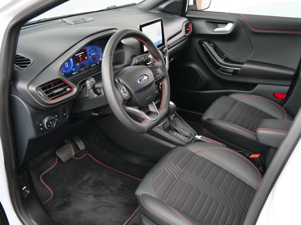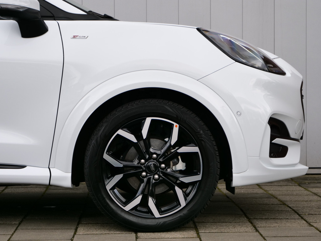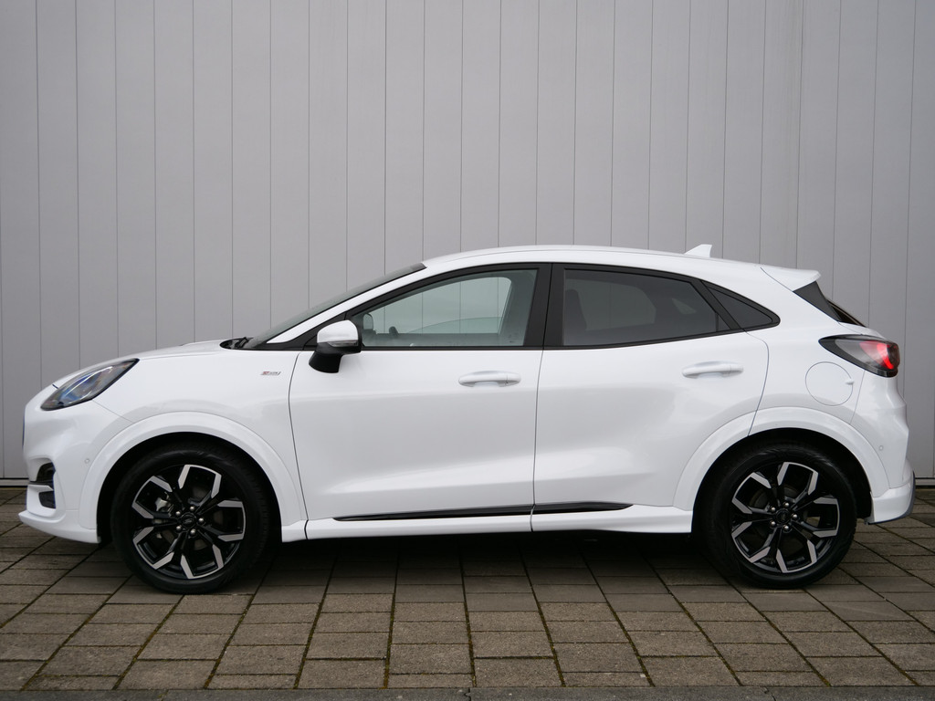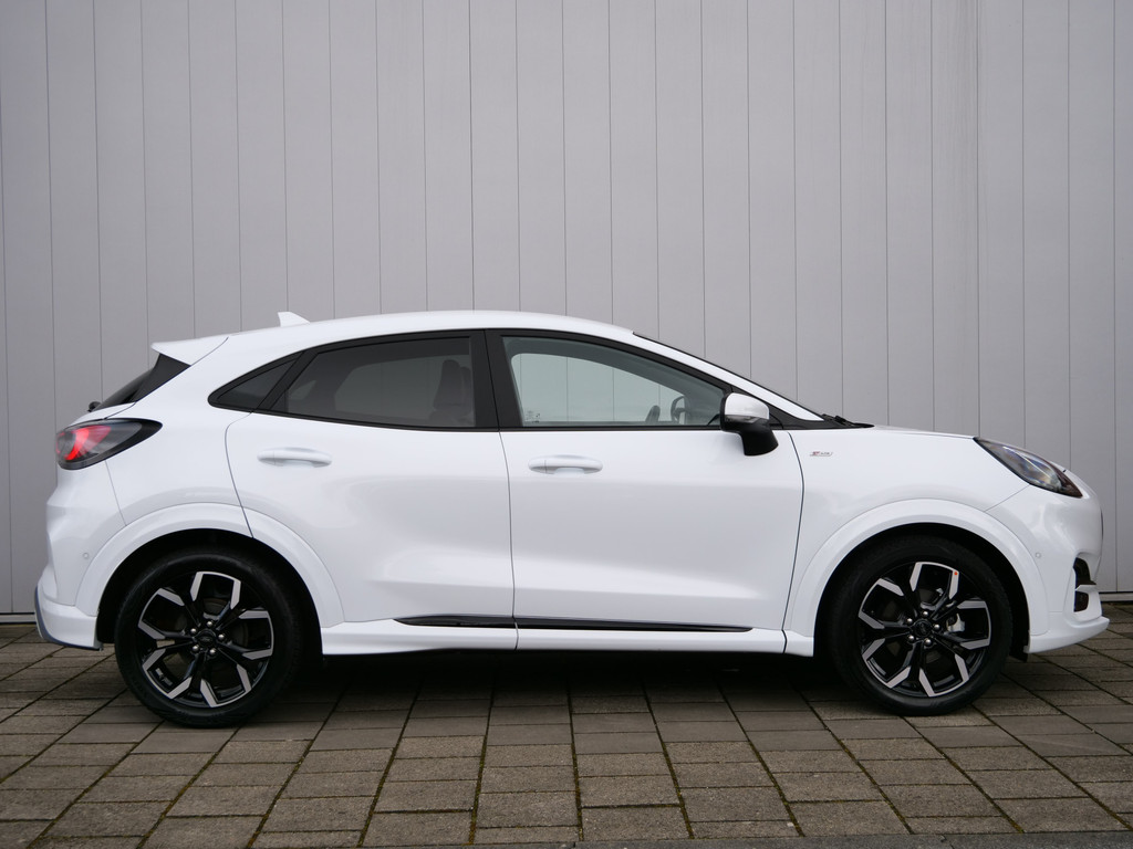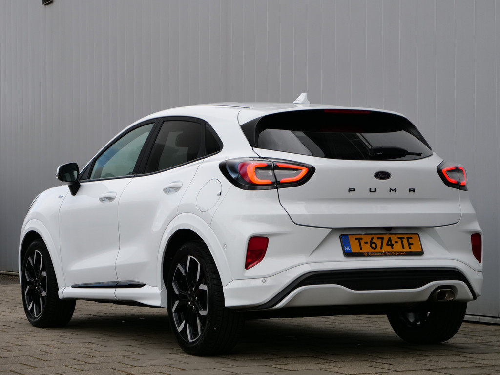 U ziet het meteen aan zijn krachtige design, de Ford Puma is een auto die kwaliteit uitstraalt. Onderhuids vindt u die kwaliteit terug in de geavanceerde techniek, die deze auto zijn sportieve rijeigenschappen geeft. Met zijn benzinemotor en automatische transmissie is dit een prima auto voor nog vele kilometers. Lekker hoor, die verwarmbare voorstoelen. Helemaal op koude dagen. Ziet er goed uit, die sportstoelen. Maar waar het om gaat, is de solide zit onder alle omstandigheden. Met een druk op de knop gaat de elektrische achterklep open. Ook is de auto voorzien van: 18 inch lichtmetalen velgen, LED koplampen, sportonderstel, halflederen bekleding, geluidsisolerende ramen en in delen neerklapbare achterbank.