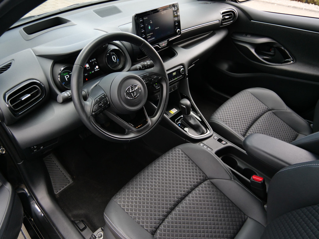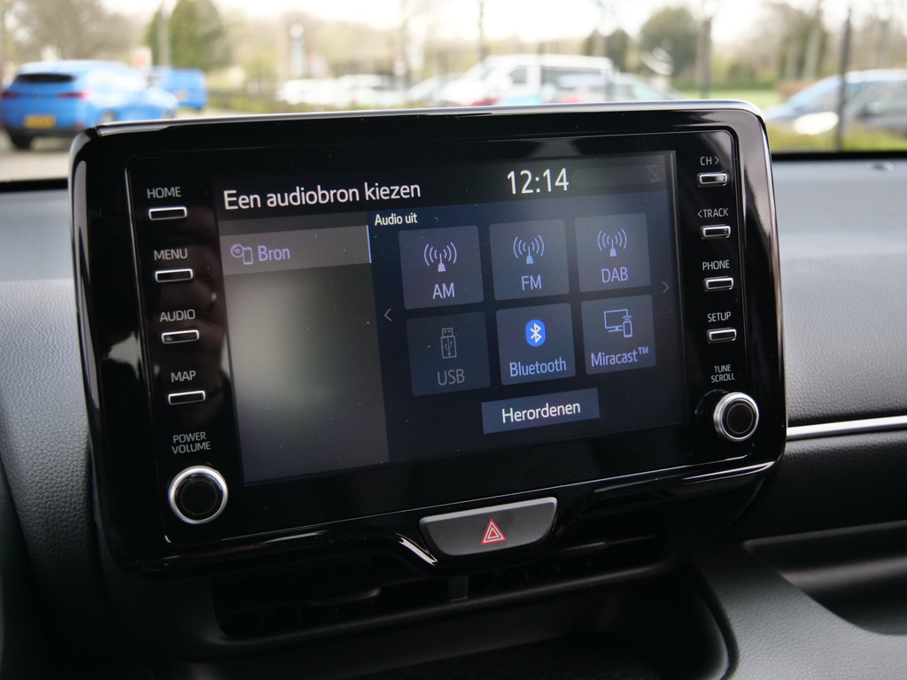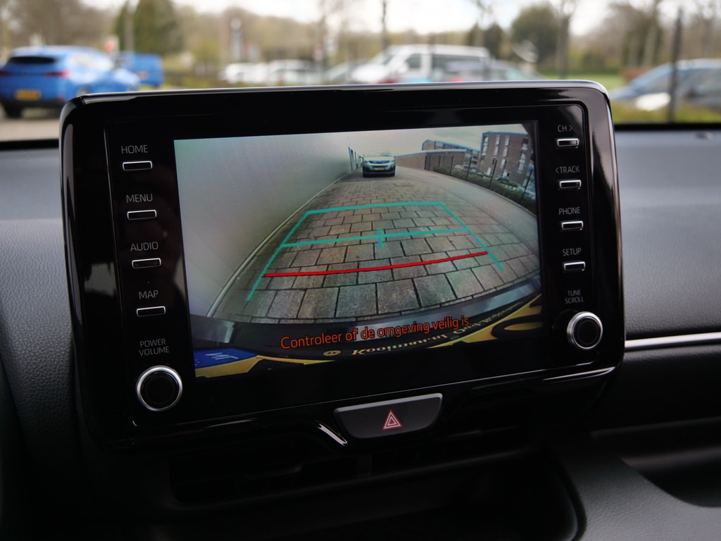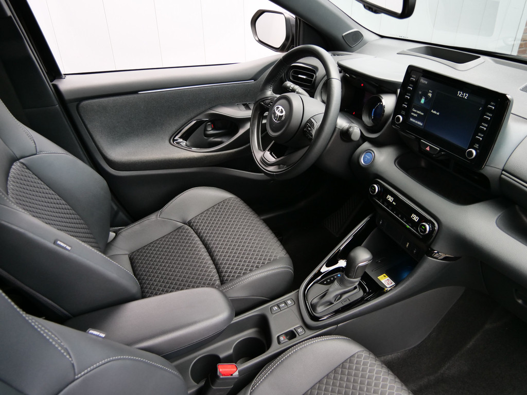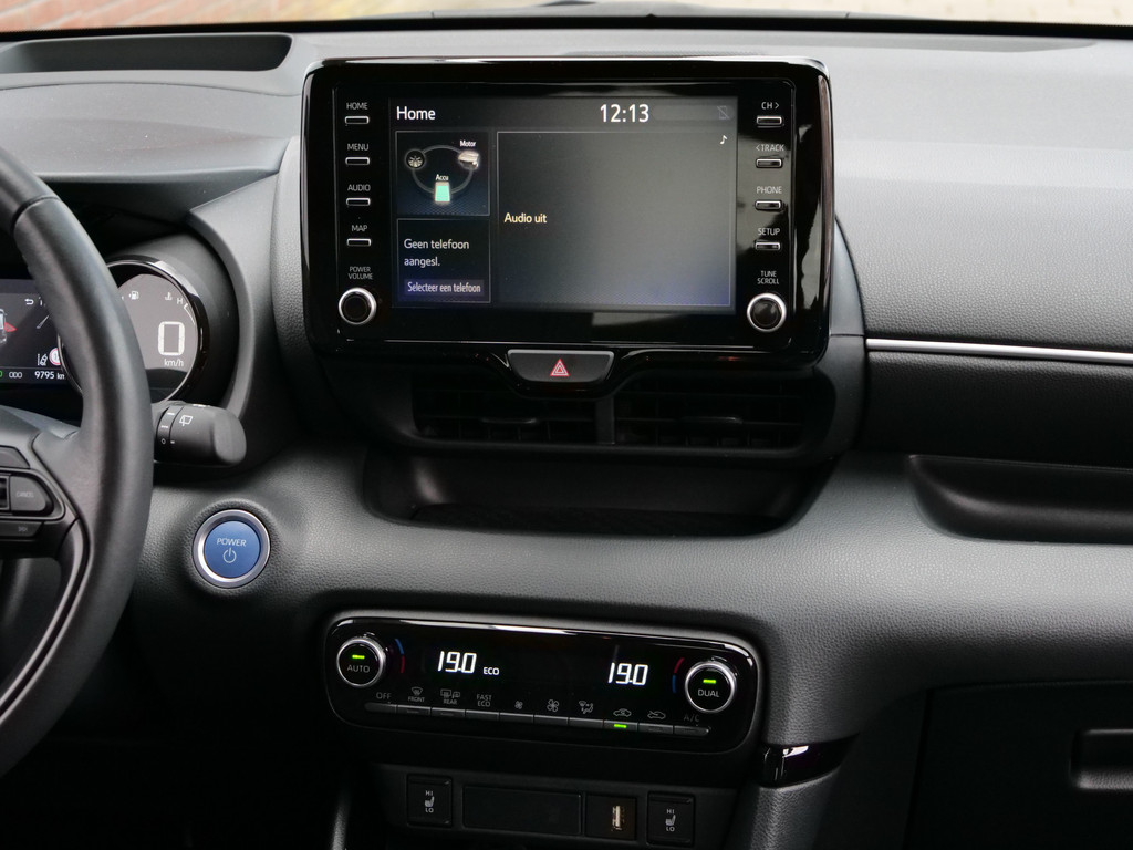 Een cockpit, een informatiecentrum... Wat is de cabine eigenlijk niet? Dankzij het digitale dashboard bent u van alles op de hoogte. De achteruitrijcamera laat duidelijk zien hoeveel ruimte u nog heeft bij het inparkeren. Adaptive cruise control houdt de ingestelde snelheid vast en houdt afstand tot het voertuig voor u. Deze Toyota Yaris is voorzien van remote services. Via uw smartphone bedient u diverse functies ook op afstand en krijgt u informatie over de status van uw auto. Een optie die de veiligheid verhoogt, is de bediening vanaf het stuur van het audiosysteem (met dab-radio!). De uitrusting van deze auto is met automatische airconditioning, regensensor, keyless entry, buitentemperatuurmeter en lederen versnellingspook behoorlijk compleet.