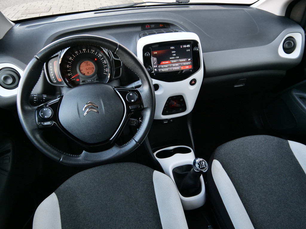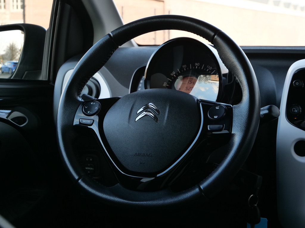 Bescheiden van formaat maar o zo slim met ruimte, de Citroën C1. De aandrijving van deze Citroën wordt verzorgd door een driecilinder benzinemotor en een handgeschakelde vijfversnellingsbak. Bij de rijke uitrusting horen ook 15 inch lichtmetalen velgen, LED-dagrijverlichting, donker getint glas achter, in delen neerklapbare achterbank en snelheidsafhankelijke stuurbekrachtiging.