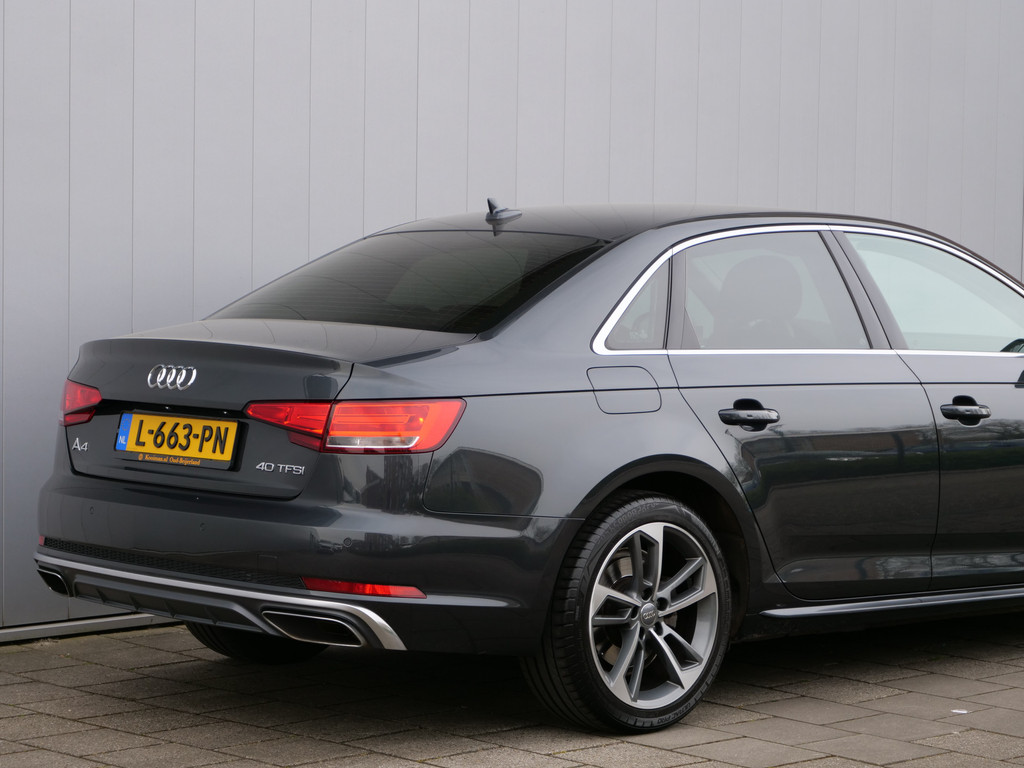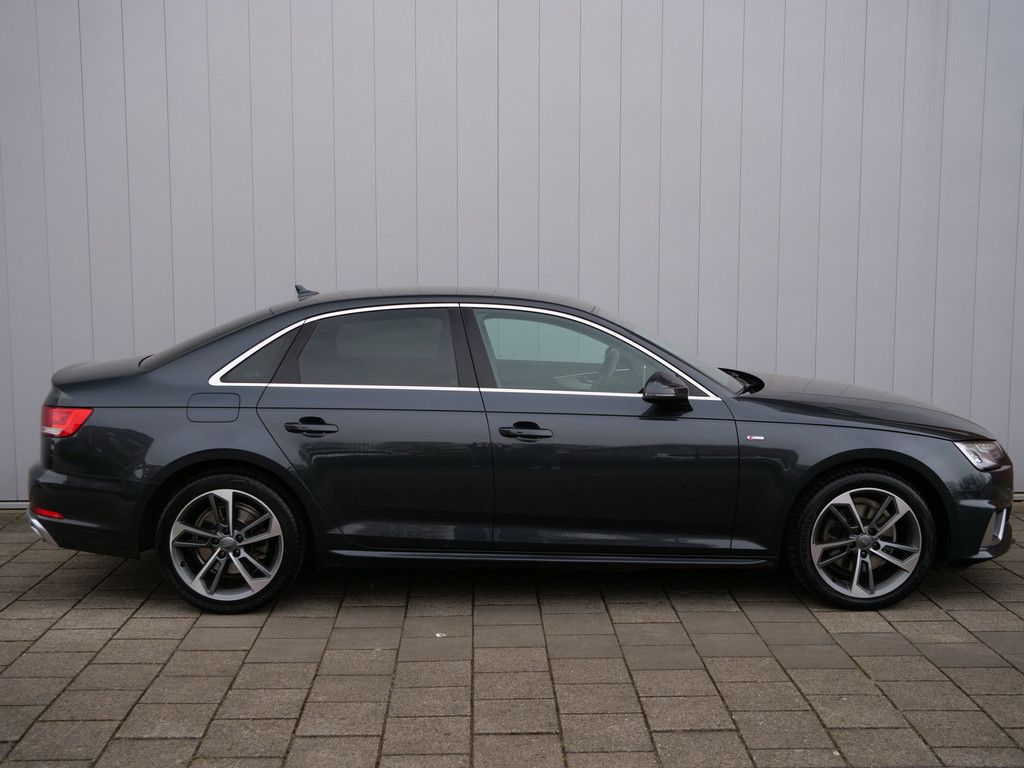 Duitse automerken staan bekend om hun innovatiekracht, topkwaliteit en uitstekende prestaties. Zo ook bij deze Audi A4 Limousine. Een en al Duitse klasse. Ook qua looks springt deze auto eruit, vanwege de fraaie S-Line styling. De uitstekende prestaties van deze auto komen van de viercilinder benzinemotor en de automatische transmissie. Tijdens gure dagen is het prettig zitten in de verwarmbare voorstoelen. Mooi om te zien en heerlijk om in te zitten zijn de sportstoelen, die u onderweg optimale ondersteuning geven. De bagageruimte is toegankelijk via een comfortverhogende elektrische achterklep. Tot de voorzieningen van deze auto behoren 18 inch lichtmetalen velgen, LED koplampen, sportonderstel, warmtewerend glas, in delen neerklapbare achterbank en LED-achterlichten.