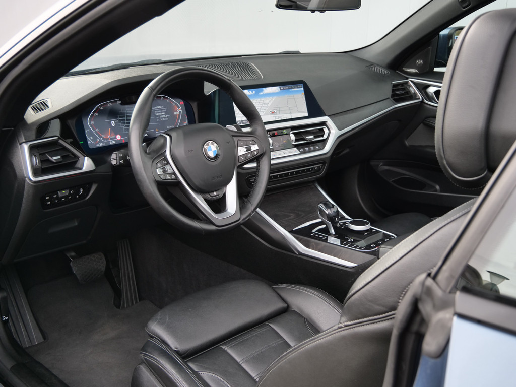 Altijd de benodigde functies in beeld? Het digitale dashboard zorgt ervoor. De functie van de 360 graden camera in deze auto is om u een totaaloverzicht van de omgeving te geven, ongeacht hoe smal de straat of parkeerplek is. Naast handmatige bediening kunt u belangrijke functies met uw stem bedienen dankzij de ingebouwde spraakbediening. Deze BMW 4-serie Cabrio is voorzien van remote services. Via uw smartphone bedient u diverse functies ook op afstand en krijgt u informatie over de status van uw auto. Met het navigatiesysteem met harde schijf kiest u de snelste route naar uw eindbestemming. Wat u ook in deze auto kunt vinden zijn electronic climate control, schakelpaddles aan het stuur, draadloos opladen, DAB ontvangst, regensensor en cruise control.