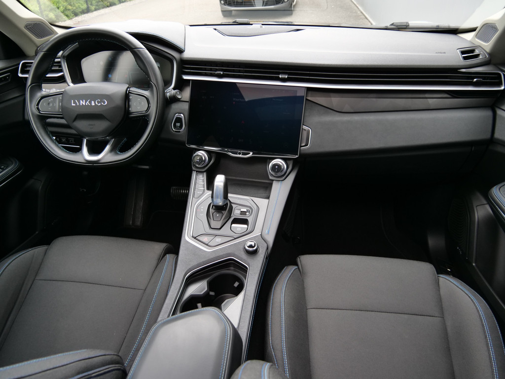 Als bestuurder van deze Lynk & Co bent u nooit alleen. U wordt onderweg bijgestaan door technologische hulpmiddelen die samen met u de weg in de gaten houden. Als het nodig is, grijpen ze zelfs in, door te remmen of bij te sturen. Onderweg fungeert de verkeersbord-detectie als het ware als uw bijrijder en attendeert u op de verkeersborden langs de weg. Het Lane-keeping systeem registreert permanent of u binnen de lijnen van de rijstrook blijft; dwaalt u onbedoeld af, dan waarschuwt het systeem en corrigeert de koers. Het risico van een kop-staartbotsing wordt aanzienlijk verminderd door de forward collision warning. In deze Lynk & Co vinden we verder een dodehoekdetectie, hill hold functie, brake assist en vermoeidheidsherkenning.