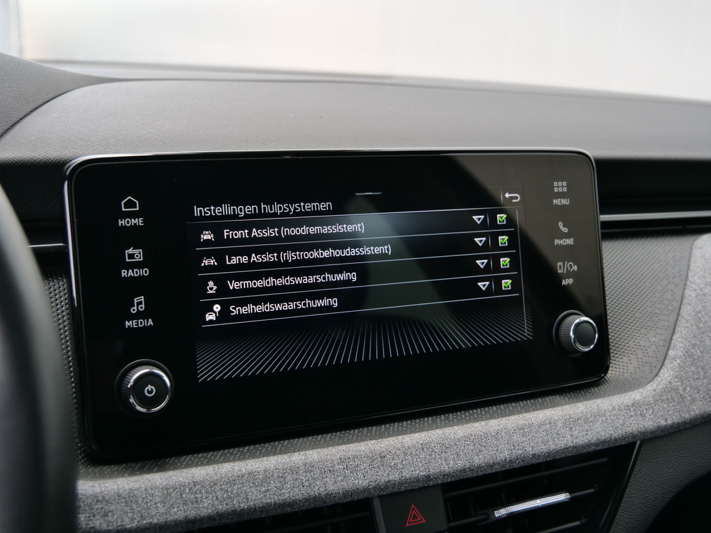 Met de nieuwste technologieën aan boord is deze ŠKODA in staat om zelf te reageren op potentieel gevaarlijke situaties op de weg. Een belangrijke bijdrage aan de veiligheid onderweg levert de verkeersbord-detectie in deze ŠKODA. Onbedoeld buiten de rijstrook raken wordt voorkomen door het Lane-keeping systeem. De forward collision warning reduceert het gevaar van een botsing met een voorligger significant. Ook helpen het hill hold functie, vermoeidheidsherkenning, autonoom remsysteem en bandenspanningcontrolesysteem, uw rit tot een veilige rit te maken.