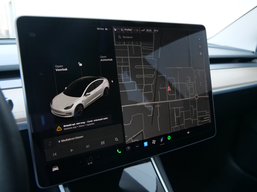 Dus u bent aan een nieuwe auto toe? Kom dan eens kijken naar deze Tesla Model 3. Het is een fraai gelijnde auto, uitgerust met belangrijke veiligheidssystemen en hij biedt veel comfort voor u en uw gezin. De voordelen van de elektromotor spreken voor zich: stil, schoon en snel! Een krachtige motor geeft deze auto zijn sportieve prestaties. De auto is voorzien van een mooie en comfortabele lederen bekleding. Neem plaats op de comfortabele stoelen. Dankzij de elektrische bediening en het geheugen is het eenvoudig om hierin de beste zitpositie te vinden. Maximaal daglicht, royaal uitzicht: het glazen panoramadak zorgt ervoor! Gewoon, omdat het kan. Deze Tesla Model 3 heeft zelfs een verwarmde achterbank. In deze auto profiteert u onder andere ook van: 20 inch lichtmetalen velgen en in delen neerklapbare achterbank.
