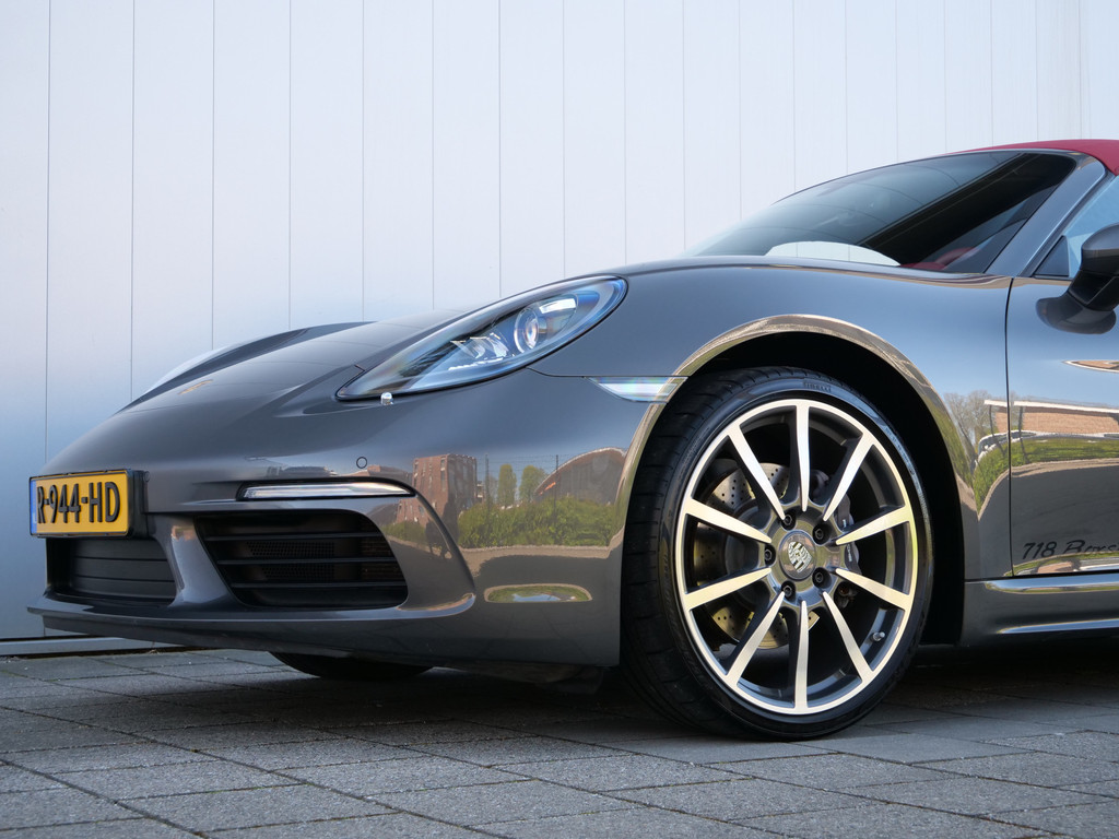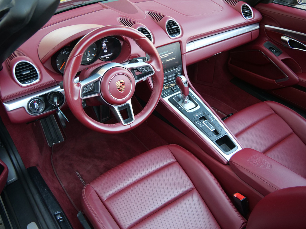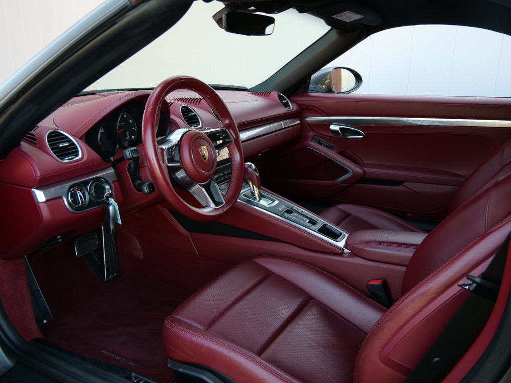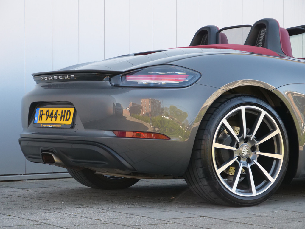 Zodra de zon zich laat zien, kunt u heerlijk genieten achter het stuur van deze cabriolet. De Porsche 718 Boxster vertegenwoordigt het beste van degelijk Duits design. Een viercilinder benzinemotor en een automatische transmissie zorgen voor de uitstekende prestaties van deze auto. De stijlvolle, luxe uitstraling is inbegrepen in de vorm van leren bekleding. Tijdens gure dagen is het prettig zitten in de verwarmbare voorstoelen. Altijd een goede zitpositie bij iedere snelheid, dankzij de sportstoelen. Het elektrisch bediende cabriodak opent en sluit automatisch. Met de krachtige xenonverlichting heeft u optimaal zicht in het donker. Bij de rijke uitrusting horen ook 20 inch lichtmetalen velgen, warmtewerend glas, LED-achterlichten, variabele stuurbekrachtiging en windscherm.