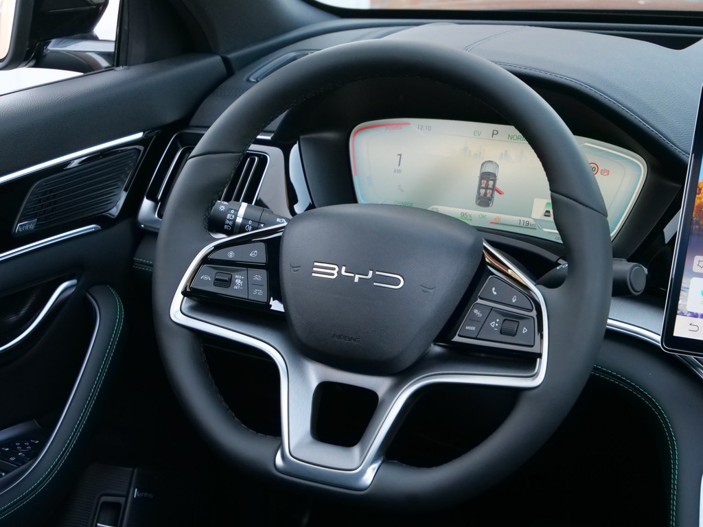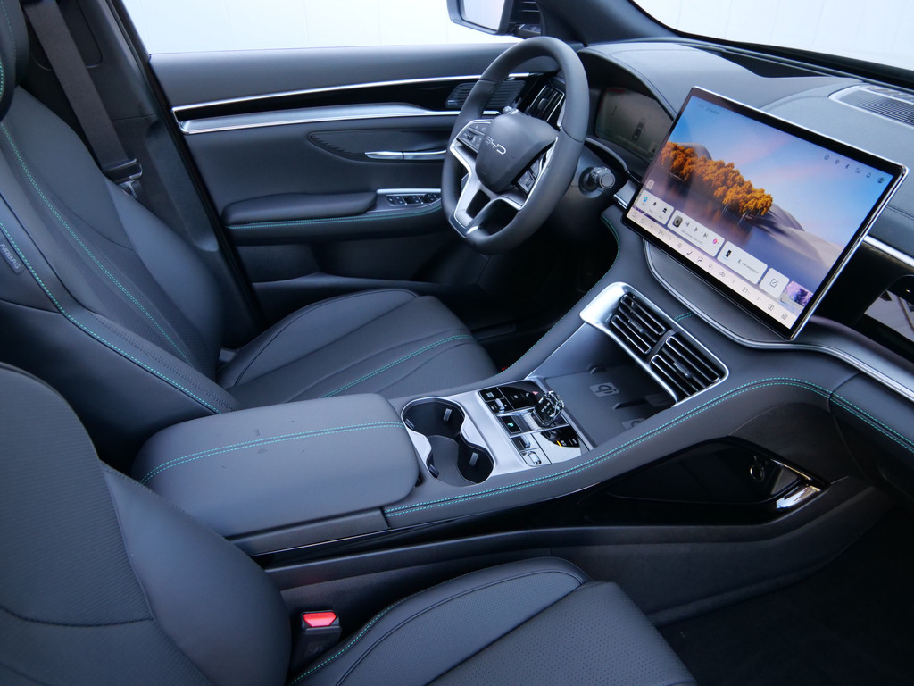 Geavanceerde technische systemen houden tijdens elke rit het verkeer in de gaten en reageren op potentieel gevaarlijke situaties. Jachtvliegers doen het al jaren, maar u kunt het nu ook: met de head-up display functie-informatie aflezen zonder uw ogen van de weg te halen. Tijdens de rit hebt u altijd een bijrijder, want de verkeersbord-detectie leest de borden langs de weg en projecteert ze voor u op het instrumentarium. Met het Lane-keeping systeem gaat u nooit onbedoeld over de streep. In deze BYD vinden we verder een dodehoekdetectie, forward collision warning system, hill hold functie, brake assist, vermoeidheidsherkenning en bandenspanningcontrolesysteem.